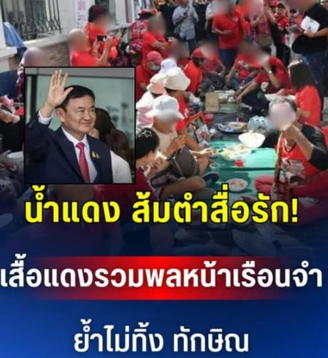 เวลาประมาณ 15.30 น. มวลชนได้นั่งปูเสื่อบริเวณริมทางเท้า พร้อมร่วมรับประทานส้มตำและน้ำแดงร่วมกัน เพื่อสื่อถึงความเป็นหนึ่งเดียวและการส่งกำลังใจให้กับอดีตนายกรัฐมนตรี