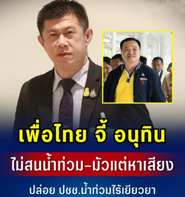 เพื่อไทย จี้ อนุทิน ไม่สนน้ำท่วม-มัวแต่หาเสียง ปล่อย ปชช.น้ำท่วมไร้เยียวยา
