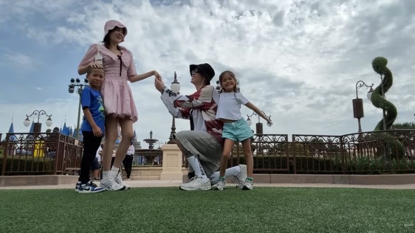 เมื่อ 8 ปีที่แล้ว ประหนึ่งคุกเข่าขอกันแต่งงานอีกรอบ เพิ่มเติมคือรอบนี้มีลูกๆ ร่วมเป็นสักขีพยาน หลังแชะภาพกับสถานที่แห่งความทรงจำจนหนำใจแล้ว ทั้งคู่ก็ลูกๆ ตะลุยเล่นเครื่องเล่นต่างๆ ในสวนสนุก กอบโกยเอาความสุขกลับบ้านกันถ้วนหน้า
